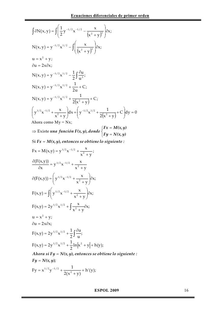 First solve the homogeneous equation y00 y = 0r2 1 = 0,so r = ±i,so y = c 1 cosxc 2 sinx This is the general solution of the homogeneous equation Now,we look for a particular solution of the initial equation of the form ax b Since (ax b)00 = 0, plugging this in the equation gives ax b = x,so a = 1,b = 0. Classical RungeKutta of order 4 So far the most often used is the classical fourthorder RungeKutta formula, which has a certain sleekness of organization about it k 1 = f n = f ( x n, y n), k 2 = f ( x n h 2, y n h 2 k 1), k 3 = f ( x n h 2, y n h 2 k 2), k 4 = f ( x n h, y n h k 3) The fourthorder RungeKutta method requires. 1v2 v) v2 c1 Substituting v = y/x gives x2y p x2 y2 x4 ln(y p x2 y2) y4 = 3x4lnx cx4 (b) The differential equation is linear, and so is solvable by a variety of methods The easiest is probably to recognize that the left hand side is the derivative of a product d dx (1x2)y = (1 x2)y′ 2xy = 4x3 Therefore (1x2)y = x4.