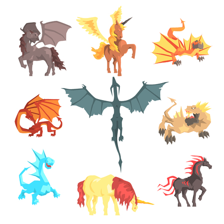 ドラゴン神話と幻想的な動物のベクトル図 のイラスト素材 ベクタ Image