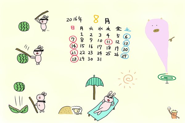 カレンダー 2016 8月 のギャラリー