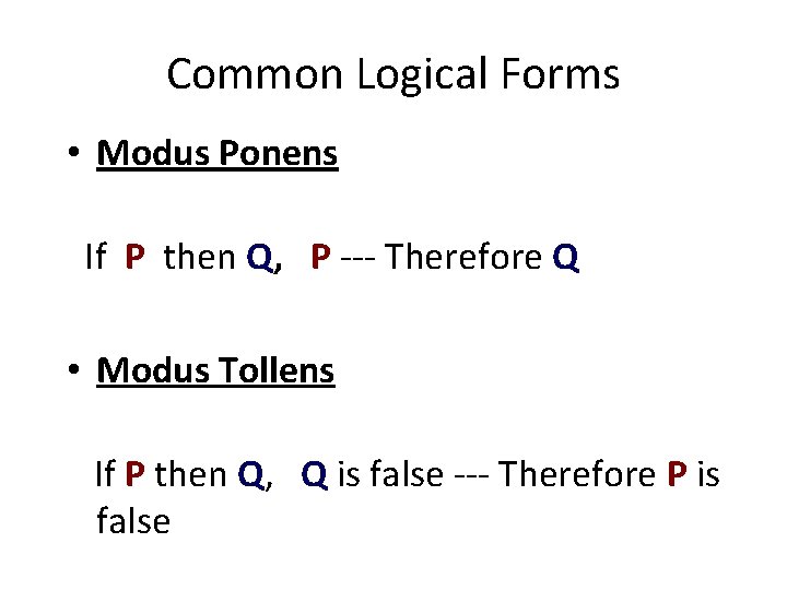 P∨q → r Constructing a truth table, we have p q r p → q q → r p∨q p∨ q → r → T T T T T T T then p has to be true Proof The truth table for this argument is as follows p c ∼ p → c p → T F T T therefore we must have ∼ q 3 Invalid Arguments or Fallacies. If P then Q, Q, therefore P Using our standard translation manual, we can evaluate them both with the following truth table P Q P → Q Q P → Q P T T T T T T T F F F F T F T T T T F F F T F T F For the first argument, the premises are all true only in row 1, and the conclusion, Q, is also. There is only one line of the truth table—the fourth line—which satisfies these two conditions In this line, p is false Therefore, in every instance in which p → q is true and q is false, p must also be false Formal proof Via disjunctive syllogism Via reductio ad absurdum Via contraposition Correspondence to other mathematical frameworks.