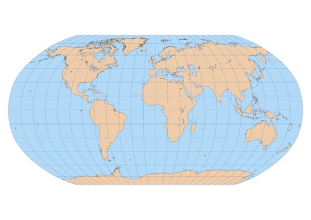 子午線と平行グリッドを使用したロビンソン投影の世界地図 アメリカは中心だった 茶色の土地と青い海 ベクターの図 のイラスト素材 ベクタ Image