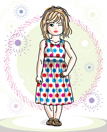 カジュアルな服で小さな金髪のかわいい女の子の幼児 可愛い子供は立ってのベクター イラストです のイラスト素材 ベクタ Image