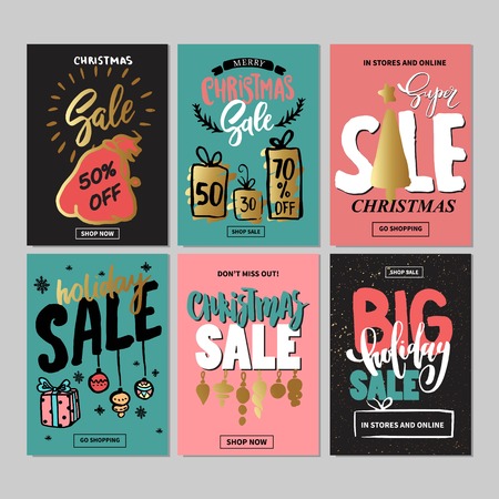 創造的な販売の休日ウェブサイト バナー テンプレートのセット ソーシャル メディアのバナー ポスター メール やニュースレターのデザイン 広告 販促資料のクリスマスとお正月のイラスト のイラスト素材 ベクタ Image