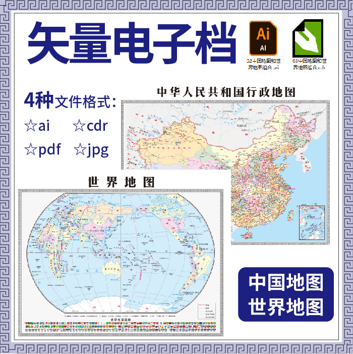 矢量中国地图世界地图高清电子档工作素材设计ai Cdr Pdf Jpg格式