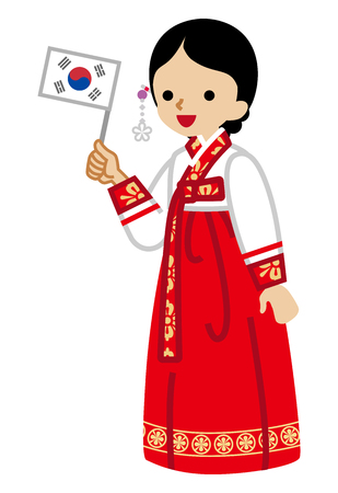 国旗を掲げる韓国人女性 伝統的な服を着て のイラスト素材 ベクタ Image