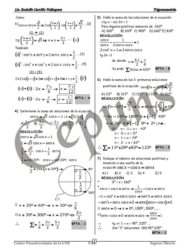 Ejercicios Resueltos De Ecuaciones Trigonometricas Ejercicios Resueltos
