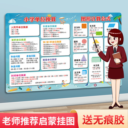 小学数学公式大全墙贴单位换算公式表小学生一二三四五六年级挂图封后小学数学公式总汇大报价 参数 图片 视频 怎么样 问答 苏宁易购