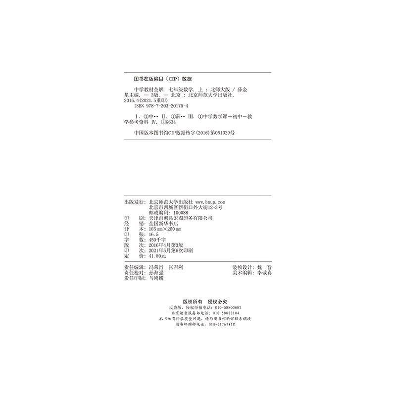 中学教材全解七年级下册数学北师大版 摘要书评试读 京东图书